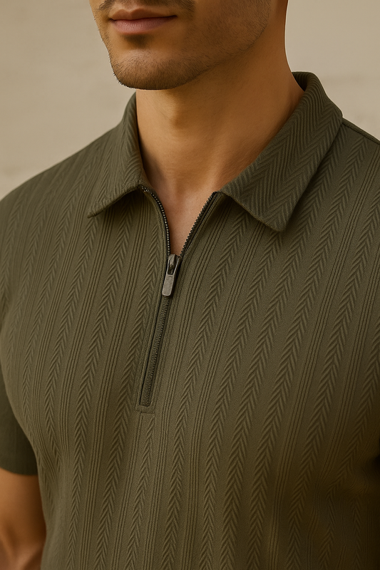 Bruno Copenhagen SS Zip Textured Polo Bungee Cord