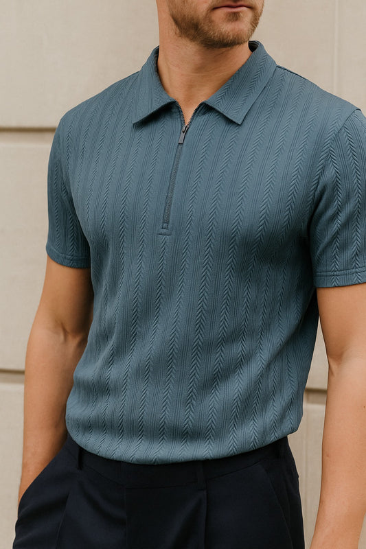 Bruno Copenhagen SS Zip Textured Polo Stargazer
