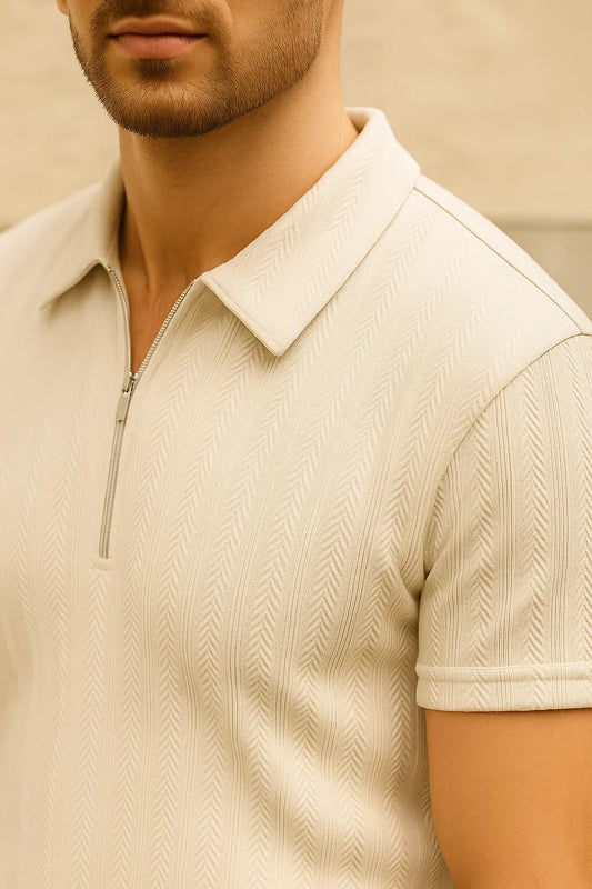 Bruno Copenhagen SS Zip Textured Polo Ivory